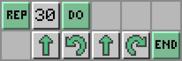- Teraz żółwik przesunie się nad wrogie maszyny. Są one oddalone o 30 bloków na północny-zachód. Żółwik powtórzy polecenia 30 razy: Repeat - Number (30) - Do