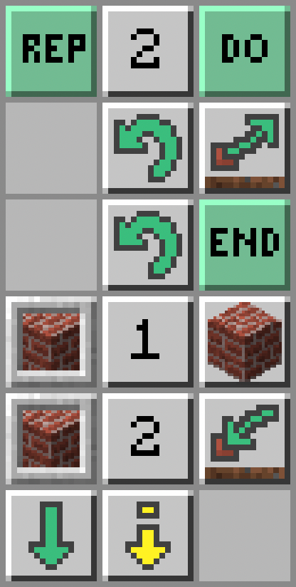 - Żółwik wykopie blok pod sobą: Dig Down; i postawi blok pod sobą: Place Down